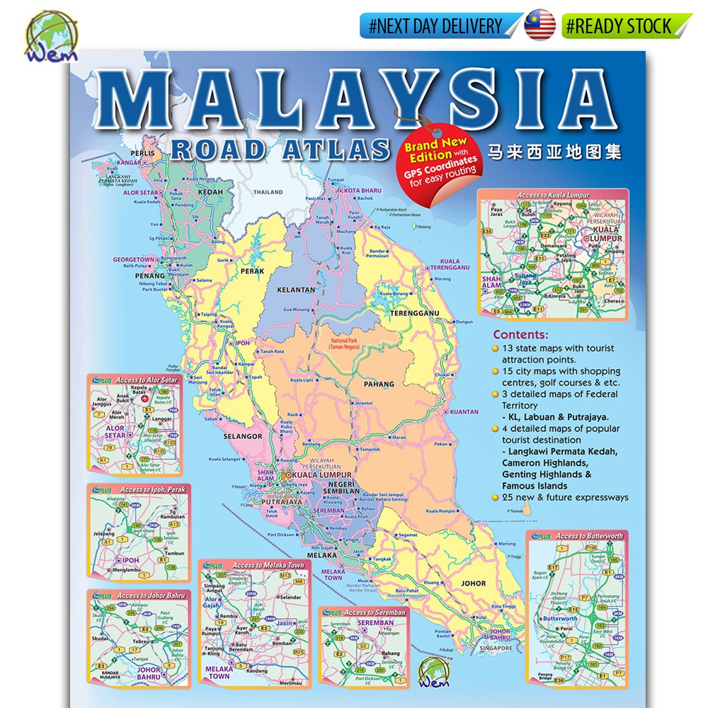 Malaysia Road Atlas 19 5cm X 22 5cm X 48pages 马来西亚地图集 Shopee Malaysia